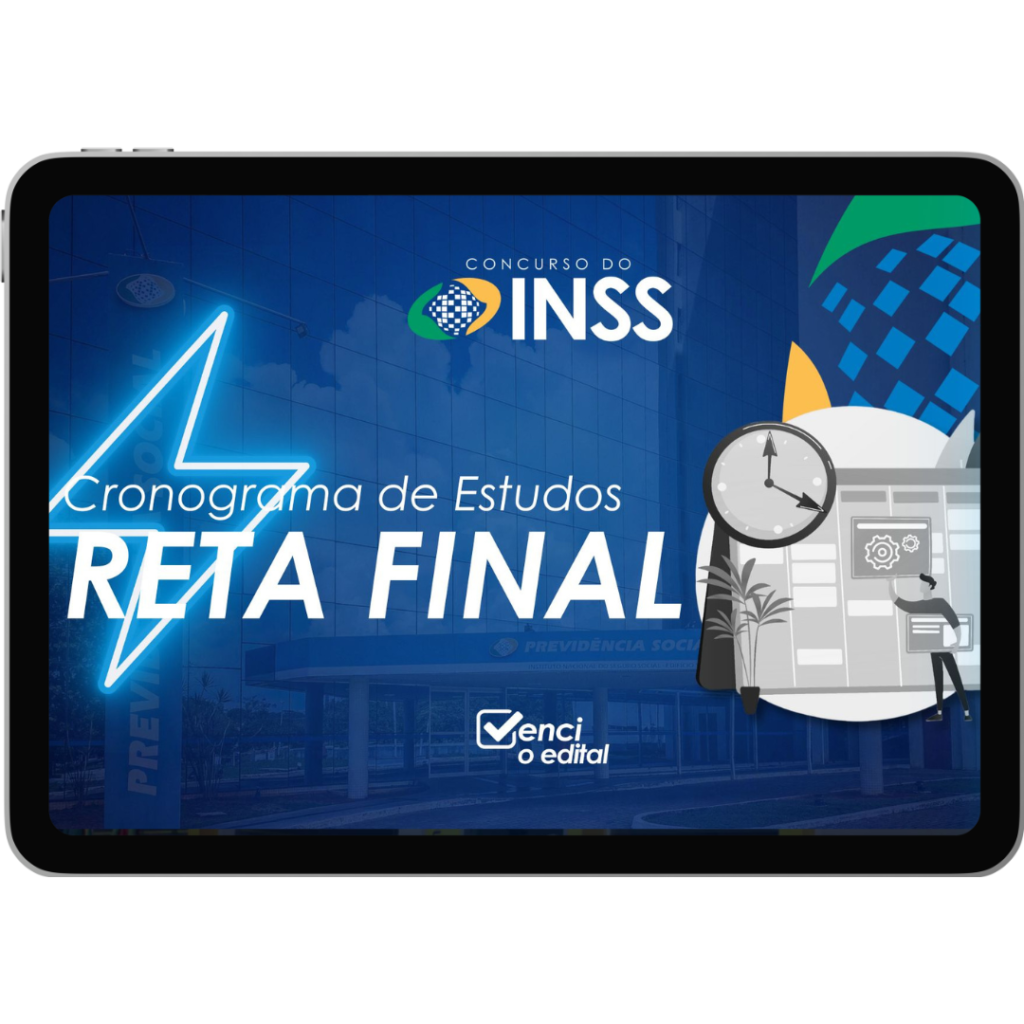 Passe por todas os tópicos que serão cobrados no concurso do INSS vendo os conteúdos mais relevantes em menos de um mês. Isso com metas de estudos diárias e semanais desenvolvidas especialmente para esse concurso.